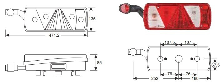 A bal oldali Ecopoint II hátsó lámpa főként kamionokhoz, teherautókhoz és pótkocsikhoz ajánlott, ahol a szélességjelzés fontos.