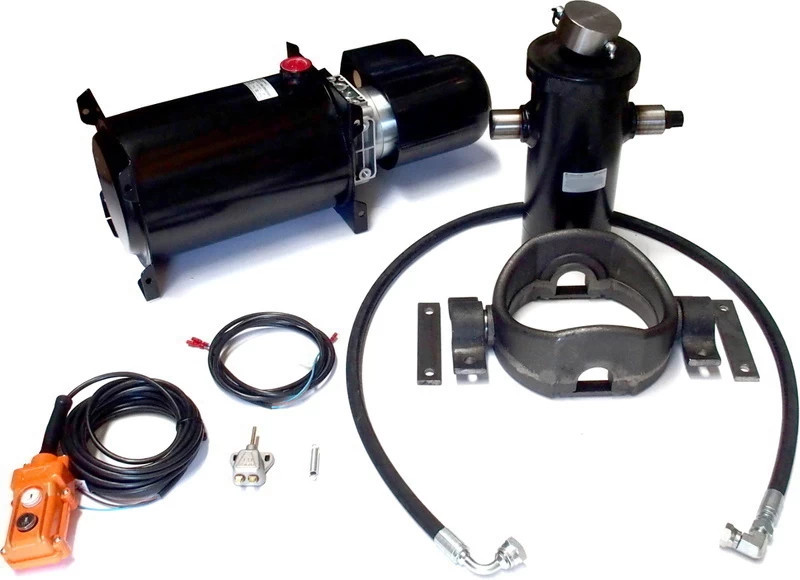 A hidraulika készlet felszerelése során ügyelj a helyes rögzítésre, a megfelelő olajszintre és a tömlők biztonságos vezetésére. A távvezérlő segítségével egyszerűen kezelhető, a végálláskapcsoló pedig hozzájárul a biztonságos leállításhoz.