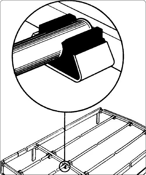 A tartó gyorsan felszerelhető a megfelelő ponyvarúdhoz vagy felépítményhez. Beépítéskor ügyeljen a pontos illeszkedésre és a szoros rögzítésre, hogy a ponyva terhelés alatt is biztonságosan a helyén maradjon.